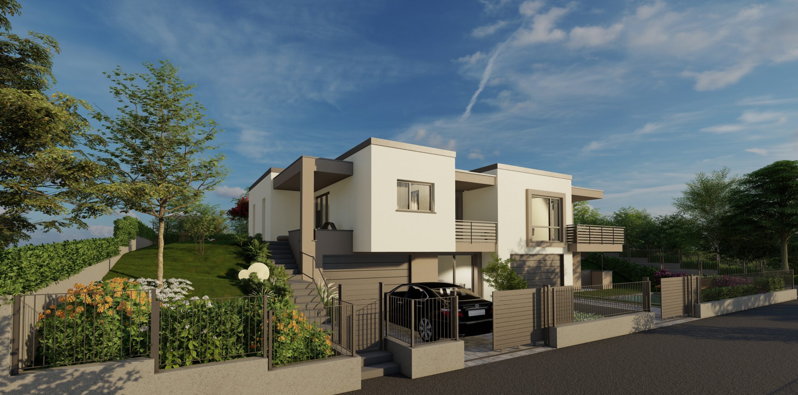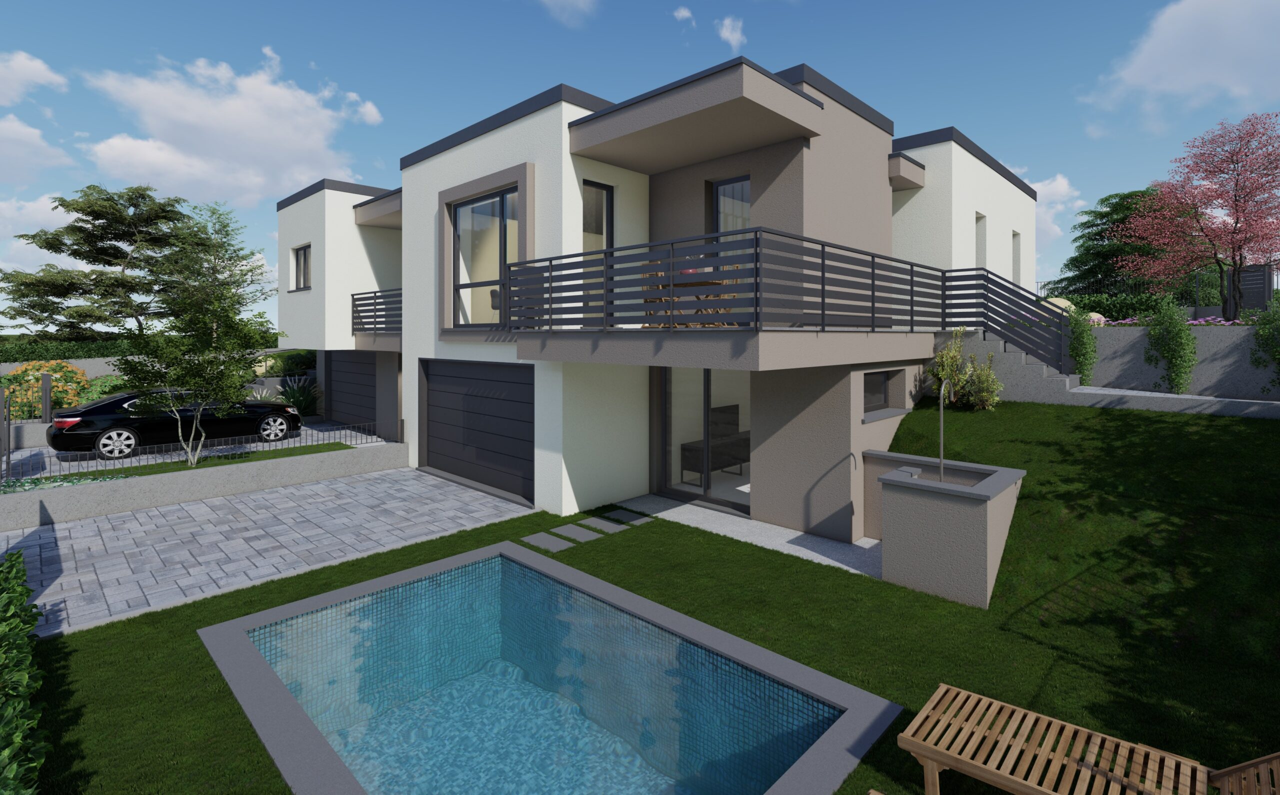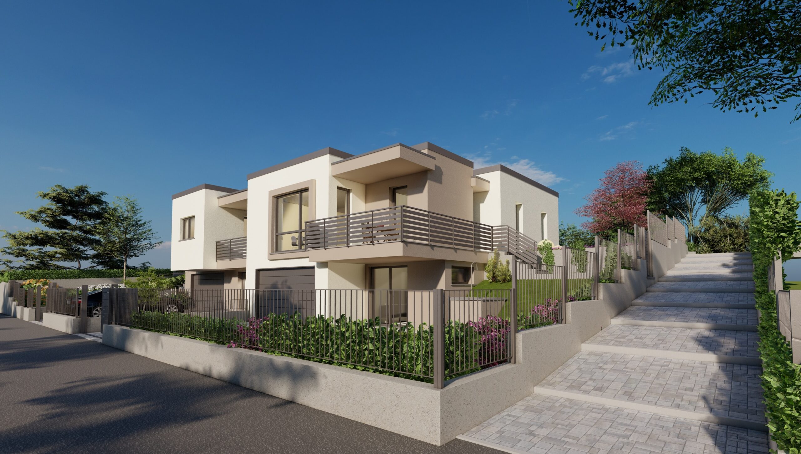 In posizione residenziale e nel verde, comoda a tutti i servizi e ai collegamenti, proponiamo nuova villa bifamiliare in costruzione situata nel comune di Villa Guardia, località Maccio.