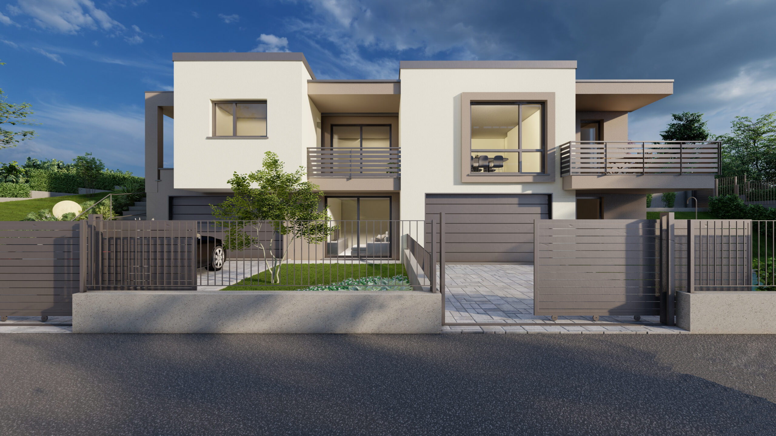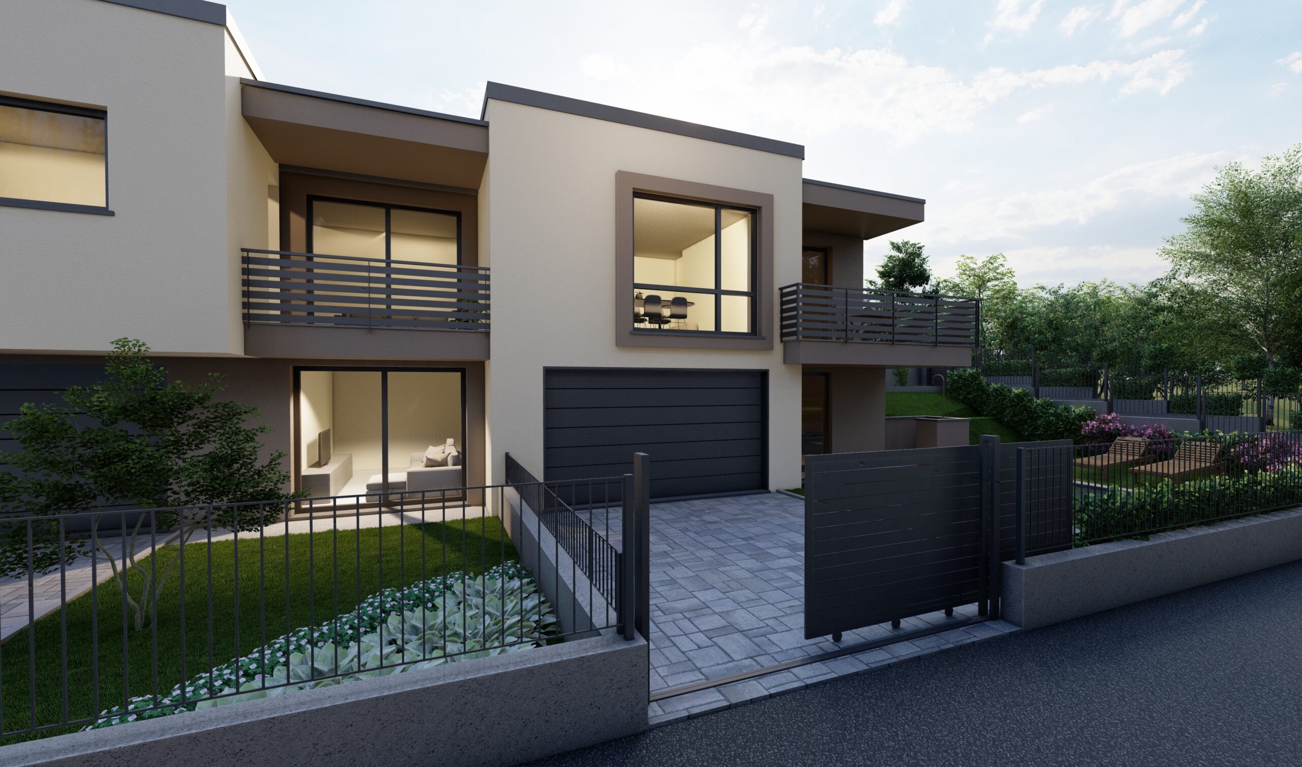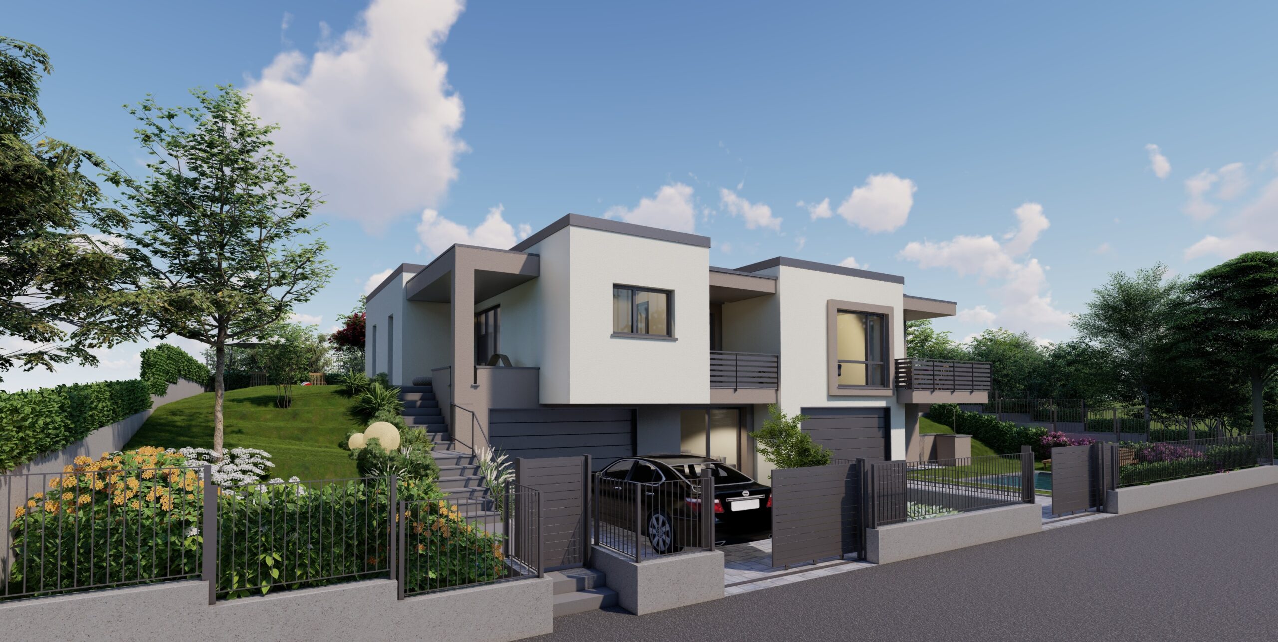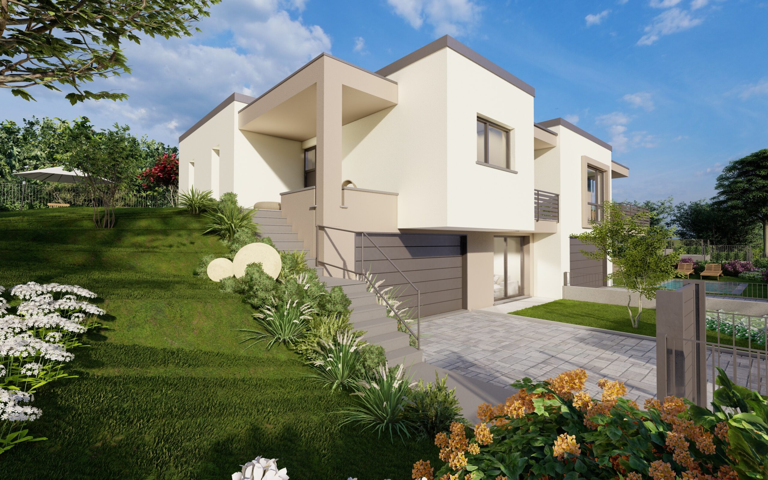 In posizione residenziale e nel verde, comoda a tutti i servizi e ai collegamenti, proponiamo nuova villa bifamiliare in costruzione situata nel comune di Villa Guardia, località Maccio.
