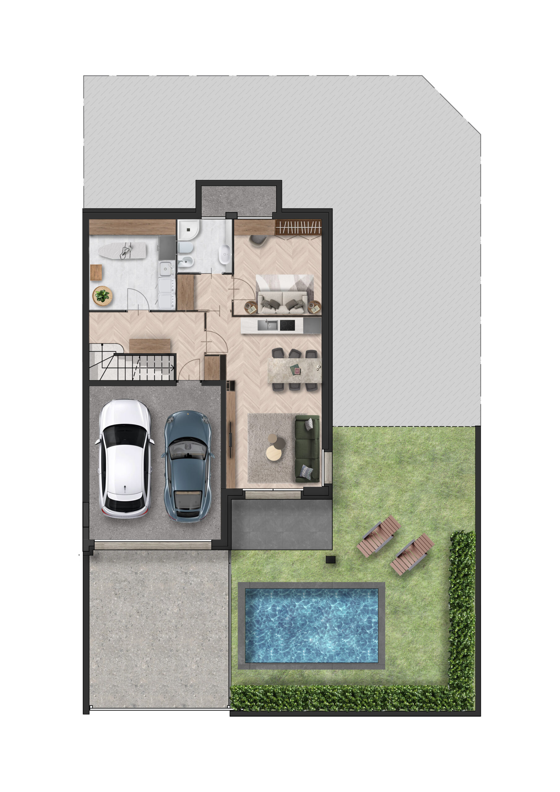 L’ampio spazio interno offre la possibilità di organizzare gli ambienti in base alle esigenze personali, garantendo un’ottima flessibilità nella disposizione degli arredi.